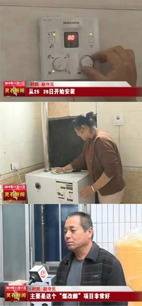 慶東納碧安的落地式甲醇鍋爐MGB500早在2019年便投入山西晉中與河北威縣的煤改醇試點(diǎn)項(xiàng)目中。并且在靈石電視臺(tái)對(duì)山西煤改醇工作的采訪報(bào)道中,受訪用戶對(duì)慶東納碧安甲醇鍋爐的采暖效果十分認(rèn)可,利用當(dāng)?shù)乇容^充足的醇燃料,為當(dāng)?shù)刈魩砹耸孢m的清潔采暖體驗(yàn),有效改善了當(dāng)?shù)卮髿馕廴镜膯栴}。