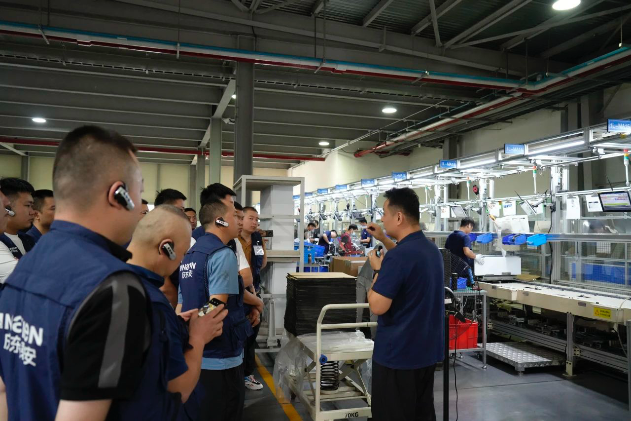 抵達北京工廠后,技術(shù)工程師一行按照計劃,先后參觀了慶東納碧安的展廳、自動化組裝車間、集成化成品倉庫以及耐久性實驗室。